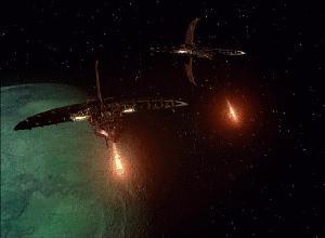 The Centauri Warship is used for medium-sized military engagements and for the defense of the Centauri homeworld. It is faster and more maneuverable than the Heavy Cruiser, and packs far more firepower than the Fighter. It has two fins projecting from the hull, one going upwards, the other downwards, and two wings jutting out to each side. It fires a forward-mounted plasma bolt, similar to the one found on the Omega-class Earth Destroyer.