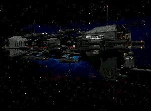The Omega-class Destroyer was originally designed to replace the outdated Heavy Cruiser class, but with the advent of the Explorer-class cruiser, the Omega-class was downgraded to a destroyer ranking. The Omega class has a rotational cylinder in the center of its hull to provide gravity, as well as a squadron of Star Furies for fighter cover. It has a large beam weapon in the aft and fore hull, as well as a plasma bolt weapon in the fore hull.